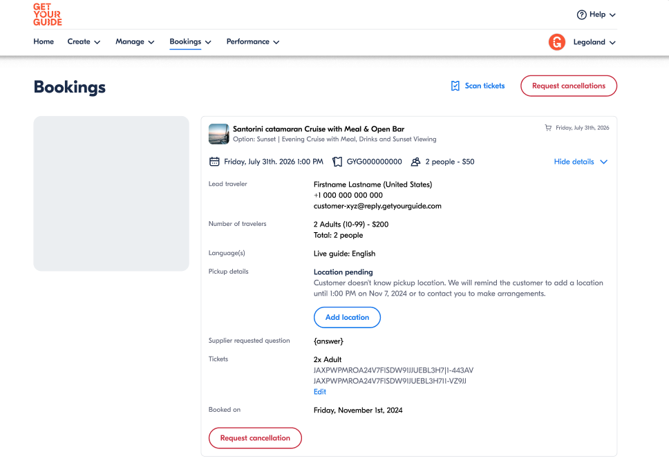 - Poskytněte vysvětlení zrušení rezervace (toto vysvětlení bude sděleno týmu GetYourGuide).