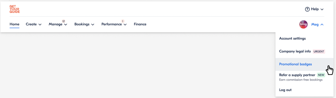Tato rozbalovací nabídka obsahuje všechna data, zpětnou vazbu nebo informace, které s vámi GetYourGuide sdílí, abyste mohli optimalizovat své produkty.