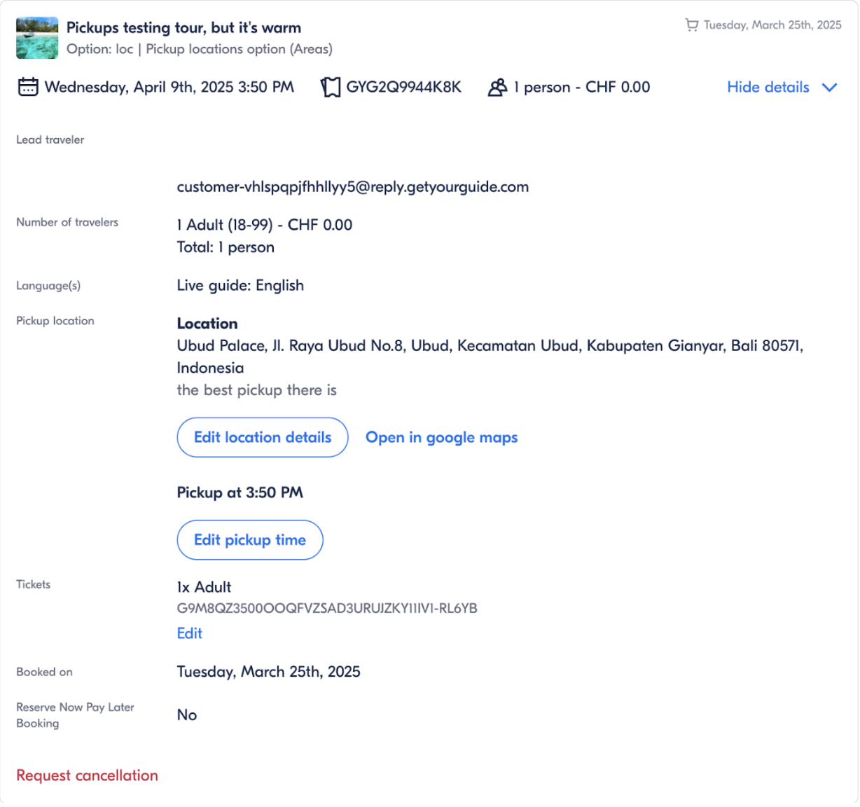 Praktischer Tipp: Stellen Sie sicher, dass alle Abholinformationen korrekt sind, um Nichterscheinen und Stornierungen von Reisenden zu vermeiden.