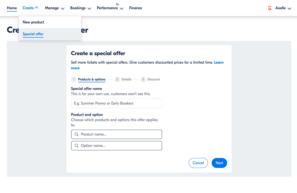 Reduce your prices for a limited time to attract travelers to your activity. These discounts are called "special offers," and you set them up here under Create > Special offer.
