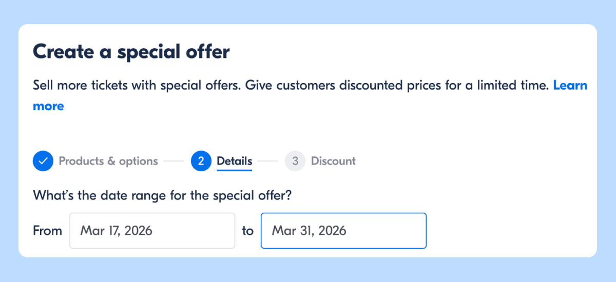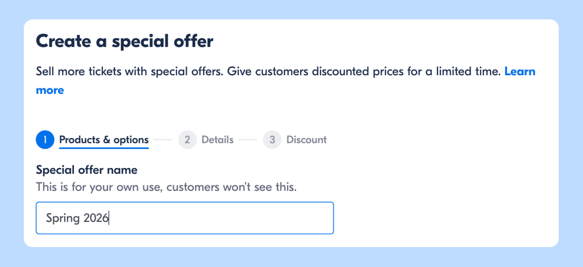 - Name your offer (e.g., "Spring 2026 Sale")