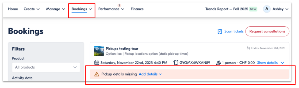 Navigate to Bookings > Pickup Planner from the main menu.What if a booking has missing pickup information?