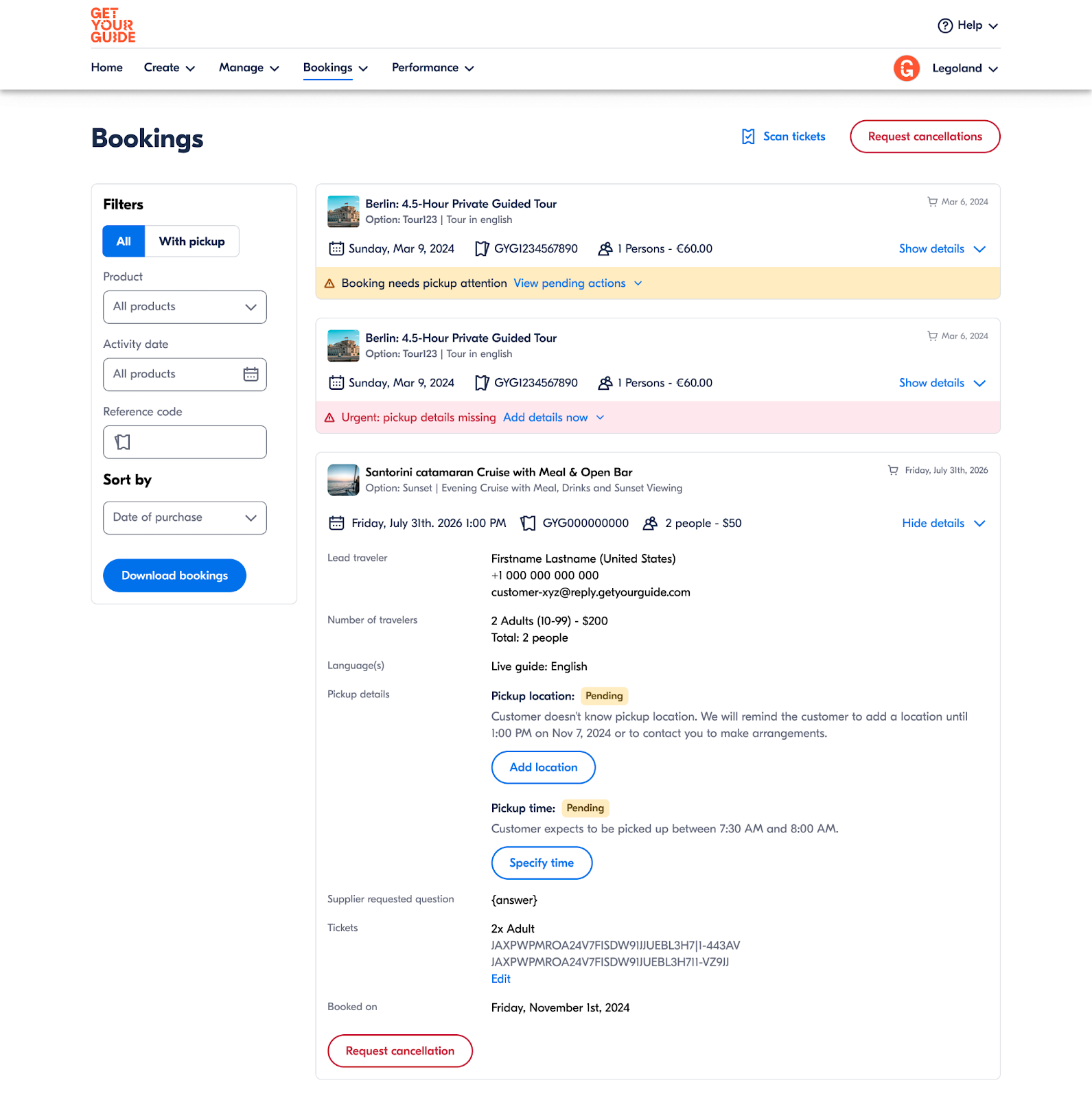 Bookings with missing details are highlighted at the top of the detailed list page for easy management.Can I set different pickup instructions for each booking?