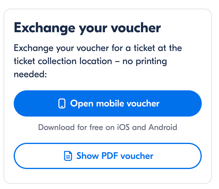 - After booking, the customer receives a voucher. They then need to go on-site or to a specific location (like a ticket office) to swap it) for the actual ticket.