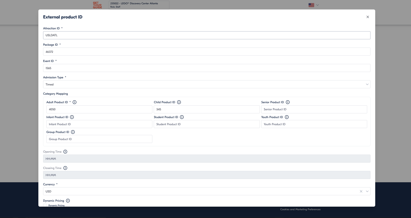 Use the Product Mapping Tool to create or select the External Product ID that links your GetYourGuide option to the correct product in your reservation system.