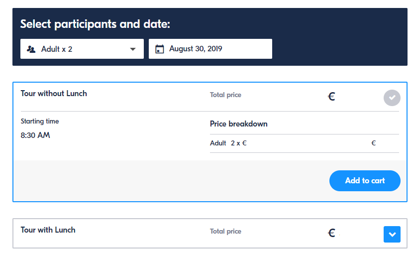 Ad esempio, se offri un tour con e senza pranzo, ti consigliamo di creare due opzioni in modo che i clienti possano vedere chiaramente la differenza tra le due opzioni e selezionare quella desiderata.
