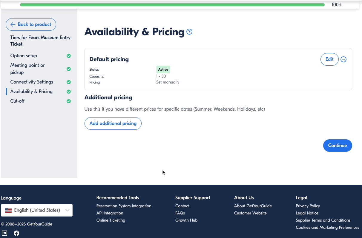 - この機能は手動価格設定にのみ適用されます。製品が API 経由の価格を介して接続されている場合は、取引エンドポイントを使用して予約システムを通じて特別価格を送信する必要があります。