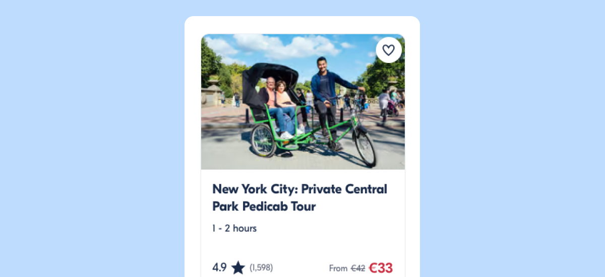 Reduza seus preços por um tempo limitado para atrair viajantes para sua atividade. Esses descontos são chamados de "ofertas especiais" e você os configura aqui em Criar > Oferta especial.